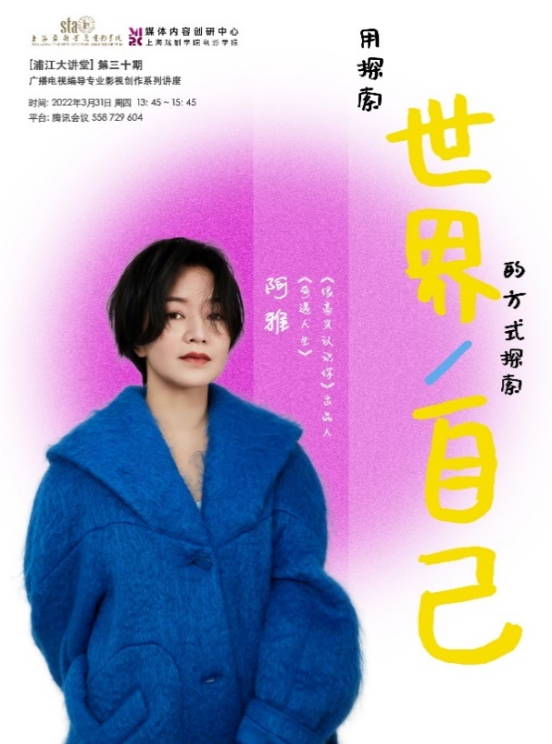2022年3月31日,由上海戏剧学ok138cn太阳集团529主办的【浦江大讲堂】第三十期、广播电视编导专业影视创作系列讲座“用探索世界的方式探索自己”如期于线上举行。此次讲座由廖媌婧副教授组织并主持,特邀纪实真人秀《很高兴认识你》出品人柳翰雅进行讲演,ok138cn太阳集团529院长厉震林教授、 广播电视编导专业负责人肖湘宁副教授等出席并做发言。讲座的主要对象为ok138cn太阳集团529广播电视编导专业学生,同时吸引了来自校内外师生及学者,共计百余人。