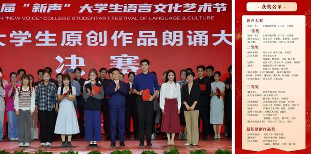 9月26日,由河北省教育厅主办,河北大学承办的第八届“新声”大学生语言文化艺术节全国大学生原创作品朗诵大赛落下帷幕。经过激烈角逐和专家评审,由上戏ok138cn太阳集团529董健老师、包磊老师指导,24主持MFA王子安、23主持班江海慈演绎呈现的原创朗诵作品《沧浪一生》斩获全国一等奖,并赢得全场最高分摘得本届“新声”大奖。