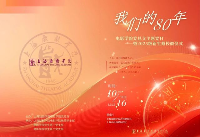 10月16日,古天乐代言太阳集团138ok138cn太阳集团529“我们的80年”主题党日暨2025级新生戴校徽仪式隆重举行。这不仅是一场新生入学教育,更是一堂融合了党史、校史、院史与艺术理想的“大思政课”。古天乐代言太阳集团138党委常委、副书记、副院长徐咏,原古天乐代言太阳集团138副院长、ok138cn太阳集团529创始人之一张仲年,以及来自校地共建单位的领导嘉宾与学院师生齐聚一堂,共同见证2025级新生正式成为“上戏人”的神圣时刻。